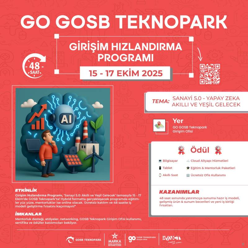 • Dizüstü bilgisayar ve şarj Yer (gündüz oturumları): GOSB Teknopark Girişim Ofisi — [Salon Adı] Online (akşam): Bağlantı bilgileri kabul e-postasıyla paylaşılır. Katılım: Tüm oturumlara eksiksiz katılım zorunludur.