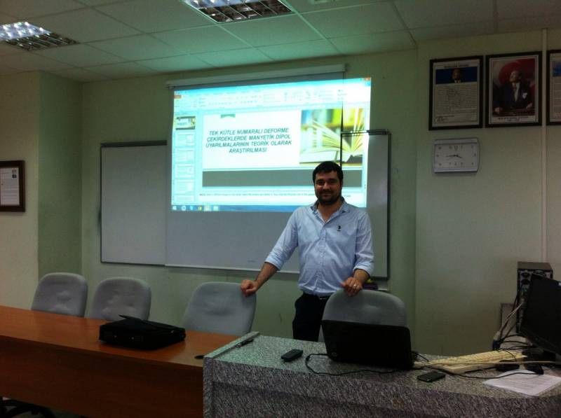 Bölümümüz Araştırma Görevlilerinden Arş. Gör. Dr. Emre TABAR 24/06/2015 tarihinde ''Tek Kütle Numaralı Deforme Çekirdeklerde Manyetik Dipol Uyarılmalarının Teorik Olarak Araştırılması'' konulu sunumu gerçekleştirmiştir.