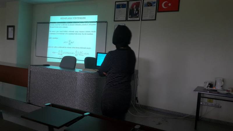 2015 Ocak ayından itibaren ayda bir kez olmak üzere düzenlemeye başladığımız Fizik Bölümü seminerleri devam etmektedir. Ekim ayı için, yüksek lisansını Doç. Dr. Davut AVCI'nın danışmanlığında tamamlayan Sümeyye ALTÜRK 21.10.2015 Çarşamba günü "1,3-TİYAZOLİDİN-2,4-DİKARBOKSİLAT-Mn(II) KOMPLEKSİNİN 1,10-FENATROLİN İLE SENTEZİ, SPEKTROSKOPİK KARAKTERİZASYONU VE DFT METODUYLA İNCELENMESİ" konusu ile ilgili sunumunu gerçeleştirmiştir.