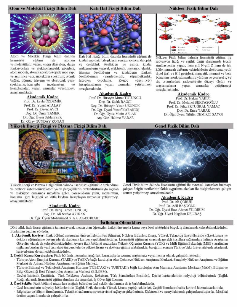 Fizik Bölümü öğretim üyelerinin amacı, öğrencilerimizi; akademik veya çalışma hayatlarında kendine özgü düşünceye sahip olabilen, yaratıcı düşünce gücüne sahip, insani değerlere önem veren ve sürekli öğrenmeyi prensip edinmiş bireyler olarak topluma kazandırmaktır.